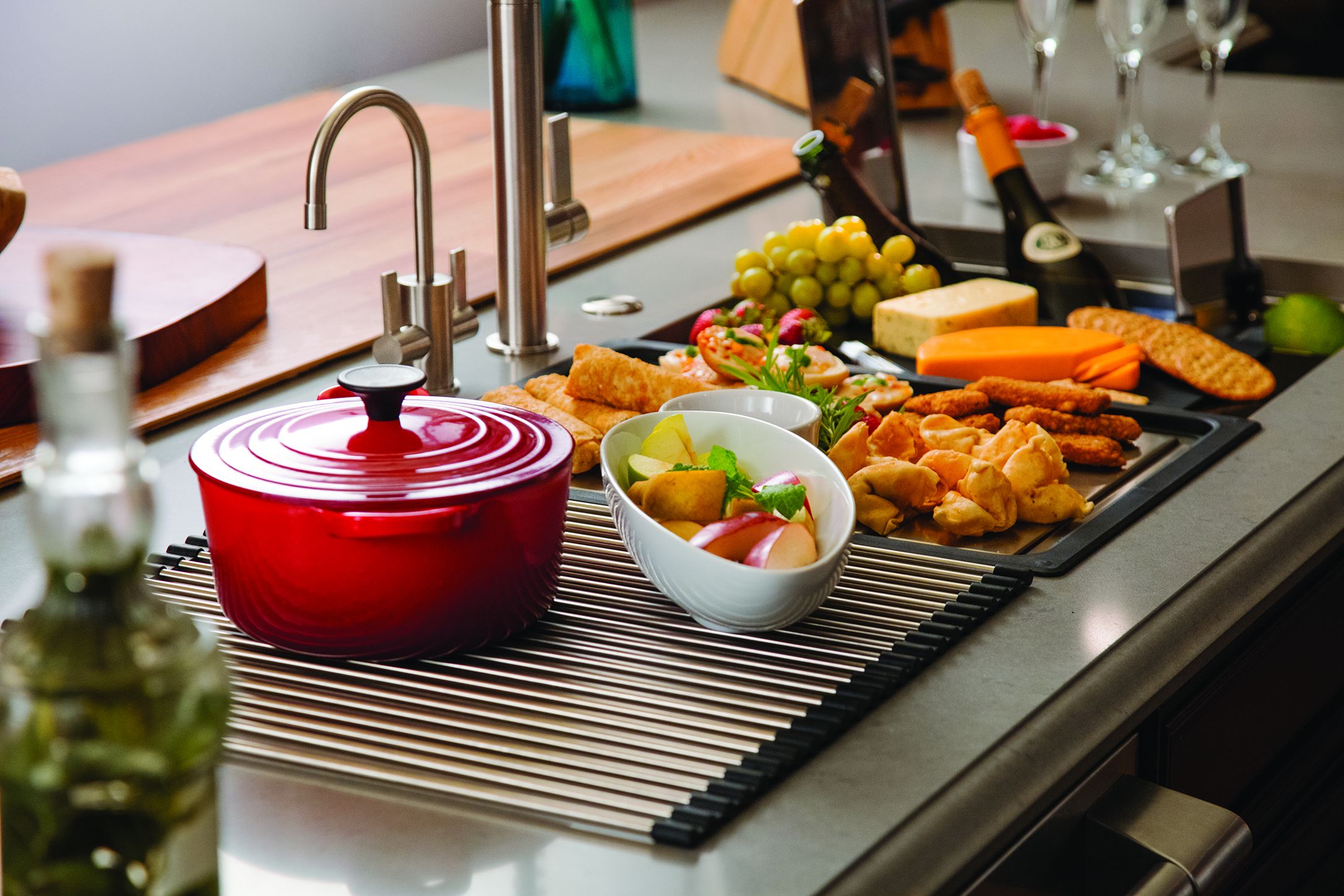 Perhaps the most simple yet innovative upgrade—setting yourself up for culinary success with a workstation kitchen sink. We recommend Franke’s Maris Sink, an adaptable model with an inner lip, perfect for adding a strainer, cutting board, and more. For something even more convenient, Franke’s Chef Center Models include a built-in workstation. If you're looking for a workstation that can do it all, including storing knives and cutting boards, check out Franke’s Culinary Center.